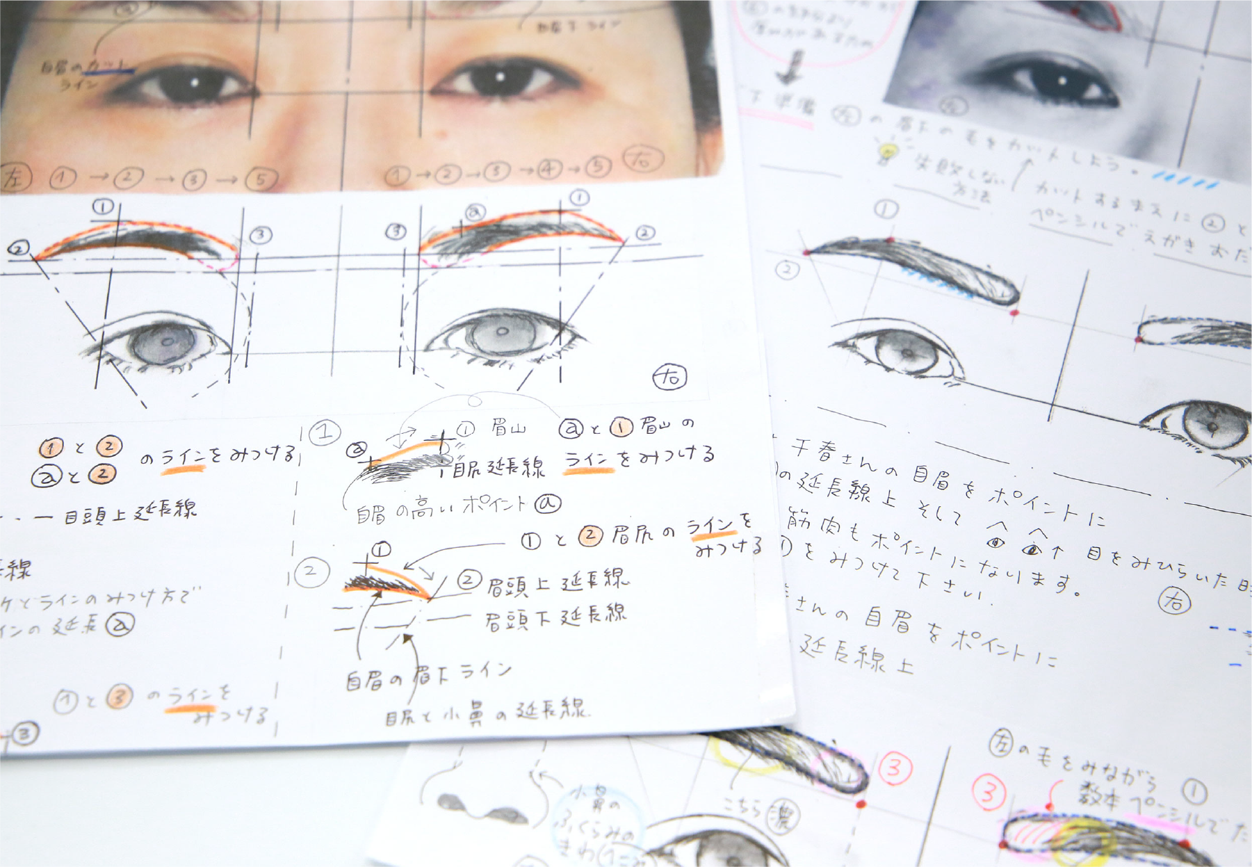 「オリジナル眉テンプレート」を一緒に作ります。テンプレートができた後は、眉メイクレッスン。